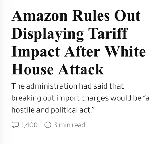 arrow-up11arrow-down1imageAmazon backs down on price transparency after White House interferes: WSJplus-squareeurope.pubtfm@europe.pubMEnglish · 8 months agomessage-square0linkfedilink