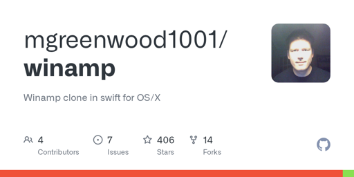 cantankerous_cashew@lemmy.world · 1 day agoWinamp clone in swift for macOSplus-squaregithub.comexternal-linkmessage-square1linkfedilinkarrow-up117arrow-down12