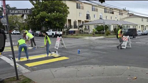 Some families in West Los Angeles are taking safety into their own hands as neighbors and volunteers in Sawtelle paint yellow cross walks at the intersections leading to Stoner Park.