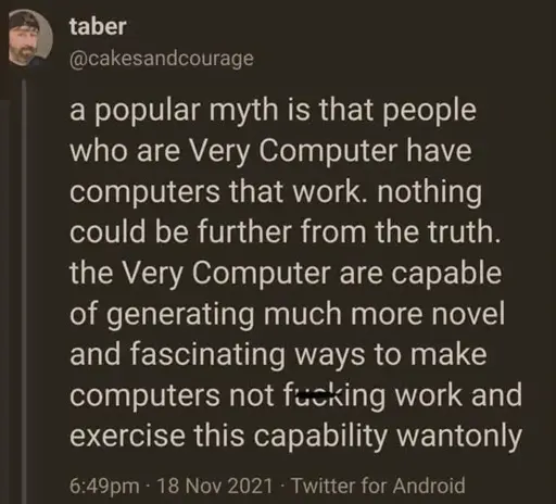 Being Very Computer means I can operate a computer that doesn’t work.