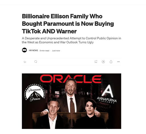 When you own TikTok’s algorithm plus CBS News plus CNN, you control the conversation at every level. You decide what “goes viral.” You decide which “experts” get platformed. You decide what questions journalists ask and which stories get follow-up coverage.