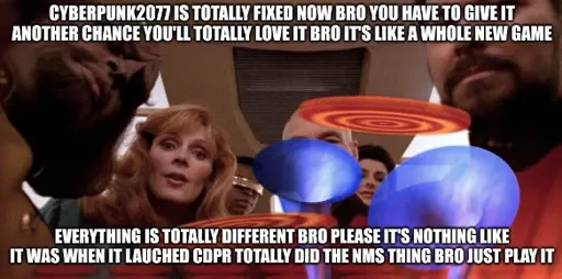 because that shit was 99% identical to at launch, bugs included. the difference between the game that people keep describing to me and the game in front of me is so stark that i’m fucking baffled. it’s like it’s a cult or something.