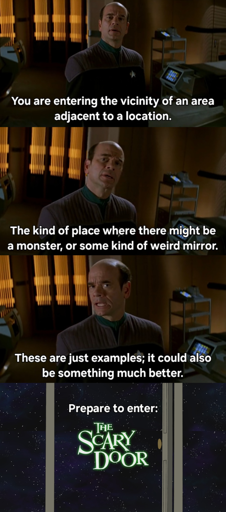 ummthatguy@lemmy.worldM to TenForward: Where Every Vulcan Knows Your Name@lemmy.worldEnglish · 17 days ago"You're entering a realm which is unusual. Maybe it's magic, or contains some kind of monster ... The second one."lemmy.worldimagemessage-square14linkfedilinkarrow-up1155arrow-down15file-text
