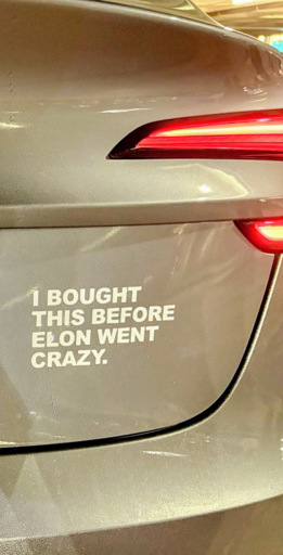 My friend’s father bought a 2025 Tesla after my friend begged him not to, but a boomer’s gotta boomer. Suffice to say, it hasn’t gone well for him, so the man went and put this decal on his car. My brother in Christ, you are driving a freshly redesigned car. Nobody is going to believe your swastikar is pre-COVID.