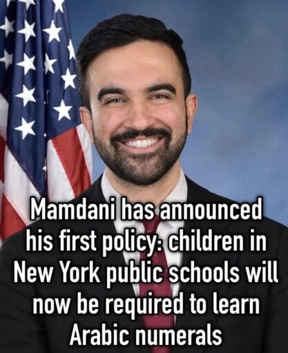 The joke is that we use arabic numbers (0, 1, 2, 3, 4, 5, 6, 7, 8, 9) but many people don’t know that those numbers are called “arabic numbers” and so racist people think It’s outrageous that these ‘foreign’ things are being taught.