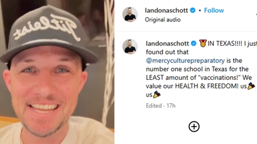 Mercy Culture pastor Landon Schott, whose Mercy Culture Preparatory Academy has a measles vaccination rate of 14.29%, posted a video on Instagram.
