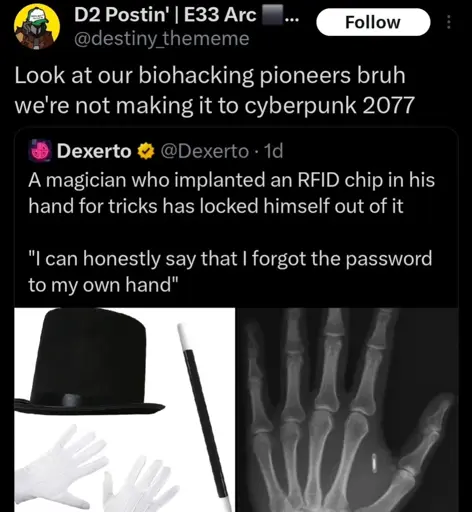 Wang explained that he originally installed the chip to use in magic routines, but quickly discovered that scanning other people’s phones against his hand “really doesn’t come off super mysterious,” especially since many devices have their RFID readers disabled by default.