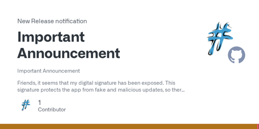 I’m not concerned about the app id changing after a signature leak, in fact, it’s what I’d expect. I am concerned about if the new signature is from the actual dev or not, and the dev hasn’t really said much other than they’ll release a disclosure once their new build is pushed to fdroid. It’s been pushed as far as I can tell, and it’s still been silence from them. I’d recommend not installing either app until this gets sorted out, and revoking the app’s access to your account.