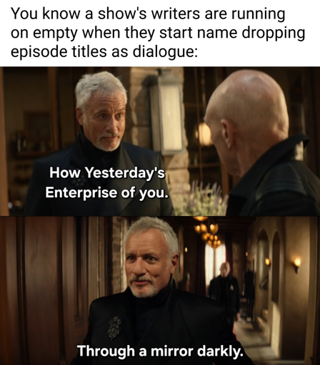 ummthatguy@lemmy.worldM to TenForward: Where Every Vulcan Knows Your Name@lemmy.worldEnglish · 1 day agoWhat, we some kinda Star Trek Picard?lemmy.worldimagemessage-square32linkfedilinkarrow-up1112arrow-down13file-text