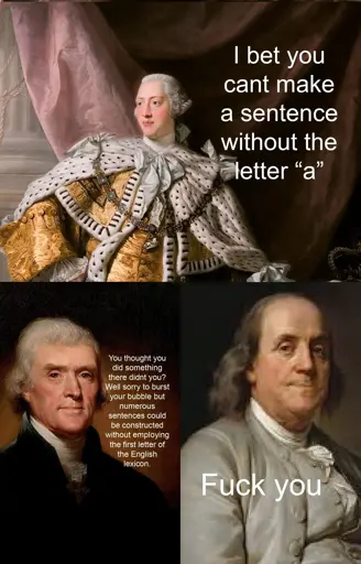 Might’ve been better paired with Adams. If I’m remembering correctly, when they were going to France, Adams tried to learn the language with rote memorization and conjugation tables and whatnot. Franklin apparently just made up “French-sounding” words.