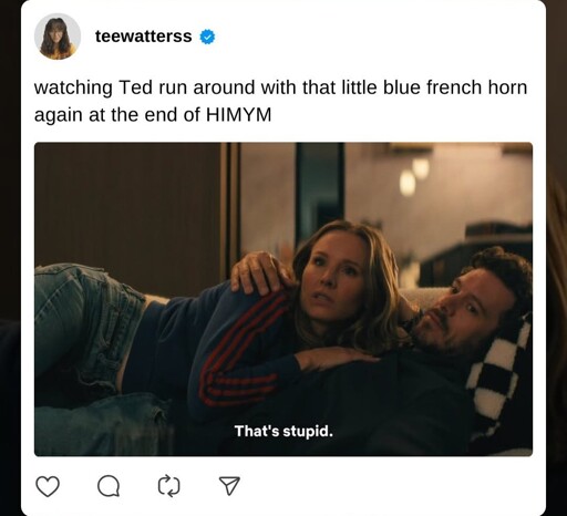 You don’t remember Cristin Milioti? It was her break out role. It’s weird to think if it wasn’t for HMIYM she might still be doing Broadway and we wouldn’t have her amazing performance 🎭 n The Penguin.