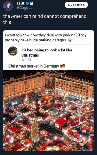 Sadly, from my experience in my German city we don’t have the upper hand here. All streets in the city center are completely overcrowded between 4 and 10 pm during our christmas market season. Same with parking garages near the city center.