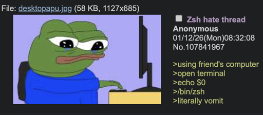 minus-squareunalivejoy@lemmy.ziplinkfedilinkarrow-up31·5 days agoJust whatever you do, don’t ln -s /bin/fish /bin/sh
