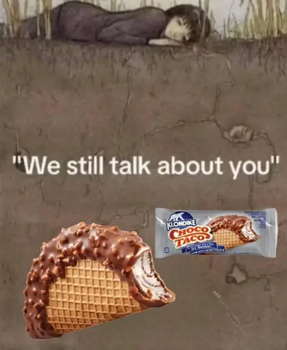 gods I miss these silly lil treats. It’s not even like they’re easy to make yourself, you’d need to find custom waffle cone taco-shaped shells to even get started. I wish a supermarket chain would have stepped up with a knock-off. Aldi plz!