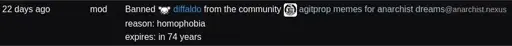 Today, i couldnt upvote a post from anarchymemes@anarchist.nexus so i decided to check it out on my pc. i noticed that i was banned from the com even though i havent posted anything on the com nor the instance. i guess the reason for the ban is that i posted a meme to different comm a while ago. The meme is homophobic but i didnt know it when i was posting it. After finding out it was homophonic, i added a disclaimer to my post.
