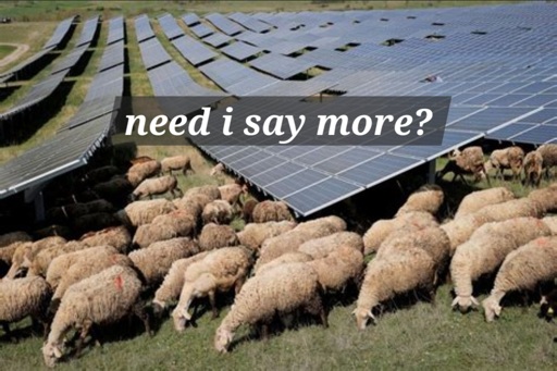 Cohabitating solar panels and grazing animals is like, almost perfect optimal land use.