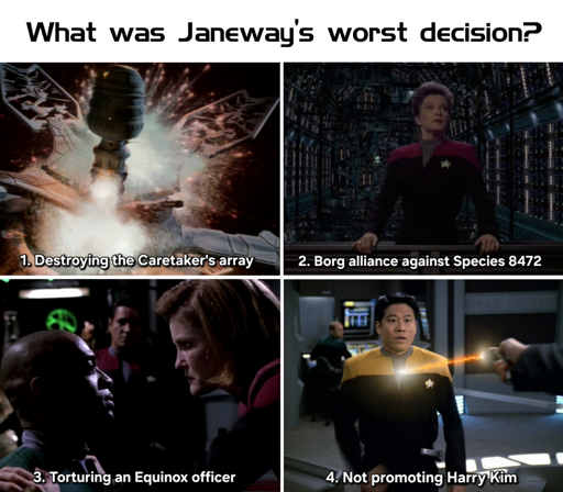 I actually just watched those episodes. Don’t think it’s her worst decision. The Hirogen had already taken Voyager and had everyone at their mercy, Janeway had to make a deal or die.