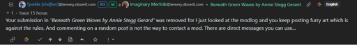 -A few days ago, a moderator on Digital Art banned me for supposedly posting “furry” (anthropomorphic animal) art. My works are based on yokai characters (Japanese mythology), kemonomimi (humans with animal ears and tails), and beasts (normal and mythical animals). Nothing falls into the furry category, which is exclusively for anthropomorphic animals. And it should be clarified that I have been posting in that community for months without any warning or comment about my works. I tried to contact her through comments in another community she moderates (I barely use Lemmy to post, and I’m not going to download external apps to open chats just for this, plus I don’t speak English), but she decided to delete them and not speak to me.