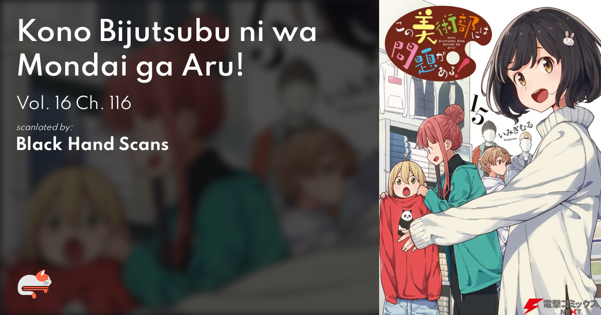 Rottcodd@ani.social to Manga@ani.socialEnglish · 1 year ago[DISC] Kono Bijutsubu ni wa Mondai ga Aru! - Vol. 16 Ch. 116 - MangaDexmangadex.orgexternal-linkmessage-square1linkfedilinkarrow-up110arrow-down10