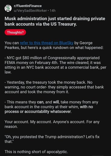 Genuinely suggesting the government might access your bank account and withdraw funds is fear mongering. I’m very aware of the disappointing and alarming things going on in this administration, but this is definitely not something that would happen to a civilian