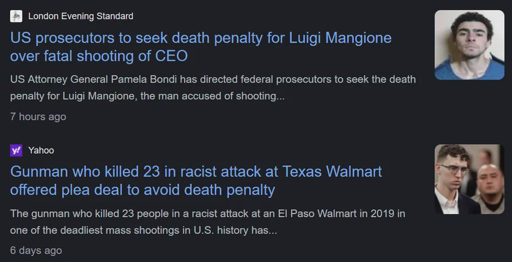 It’s actually good that the US is trying to be harsher about it. Seems unlikely the jury will conclude the crime warrants that punishment, leading to a not guilty (since the jury only gets to say guilty or not) and no double jeopardy. IMO this is actually how Luigi will avoid much, if any, prison time, like with the Casey Anthony case. Happens with other murders where the prosecution fucks up by demanding a harsh conviction where there is too much doubt or mitigating factors. They get greedy, and lose the entire case.