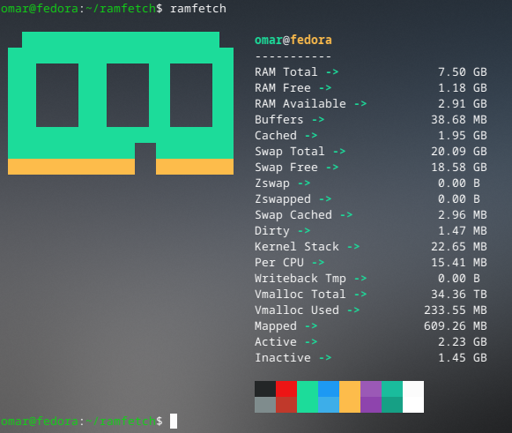 ramfetch is a fetch tool which displays memory info using /proc/meminfo i made back in christmas 2022 (i was around 11 years old at the time, currently 13) it got pretty popular on this sub and also some other subs aswell, it got 900 votes on this sub and 797+ votes on another sub too (specifically this post https://www.reddit.com/r/unixporn/comments/11hwqnb/oc_ramfetch_with_some_new_stuff/) ,but i decided to remove it since i kinda thought it was dead, but i brought it back with a new version and config file…