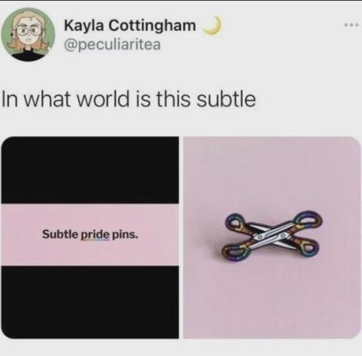 Subtle lesbian pride pins imply the existence of flagrant or direct lesbian pride pins