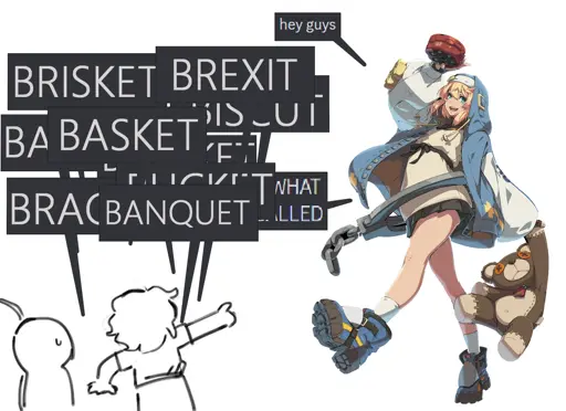 Character is Bridget, a famous trans character from the fighting game Guilty Gear, who became a meme to misname after someone mistakenly called her “Brisket”.