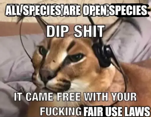 No, this is still wrong, a species cannot be copyrighted no ifs, ands, or buts. Copyright can only apply to specific characters. A species is way too nebulous of an idea to copyright. They can be trademarked but that is expensive and many of these artists don’t do it and won’t fight to retain it. You are allowed to create characters of closed species and sell them just as you would any other piece of intellectual property, and the only thing the creators of the species can do is whine, scream, and make petty meaningless threats. Which is what they have done.