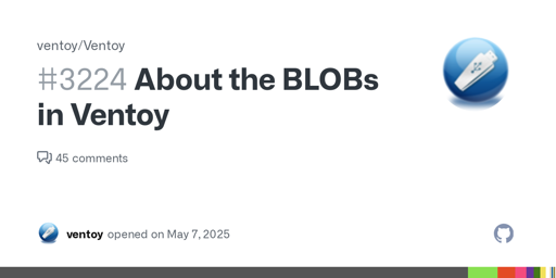 arrow-up11arrow-down1external-linkUpdate: About the BLOBs in Ventoy · Issue #3224github.comDer_Fossyler@feddit.org to Open Source@lemmy.ml · 7 months agomessage-square0linkfedilinkfile-textcross-posted to: linux@programming.devprivacyguides@lemmy.onelinux@lemmy.ml